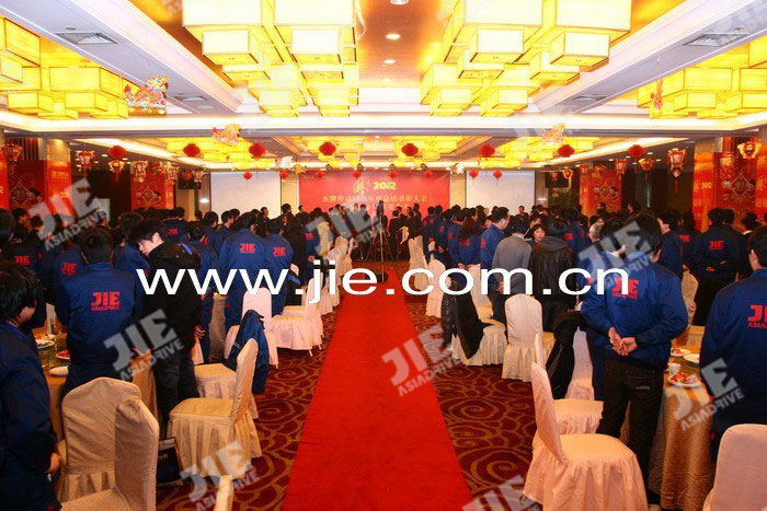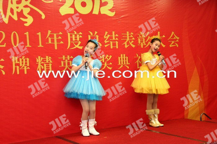 2012年01月18日,杰牌傳動(dòng)2011年度總結(jié)表彰大會(huì)暨杰牌精英頒獎(jiǎng)典禮在蕭山航民賓館隆重舉行,大會(huì)通過(guò)“工作報(bào)告、頒獎(jiǎng)典禮、簽約儀式、答謝午宴”等系列活動(dòng)總結(jié)了2011年工作,明確了2012年目標(biāo),鼓舞了全體員工的信心和士氣,為2012年目標(biāo)任務(wù)的完成奠定了扎實(shí)的基礎(chǔ),總結(jié)表彰大會(huì)后全體員工參加了答謝午宴,午宴在《杰牌之歌》的歌聲中推向高潮。